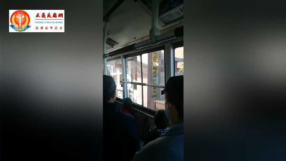 ▲上访人正在大客车上被押送到北京市久敬庄接济服务中心,等待驻京办遣回。(视频截图)