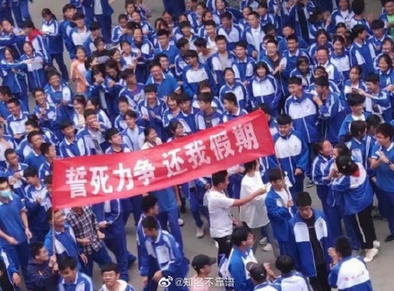 在山东,一场学生运动悄然发起,被称为“滕州一中起义”。今年“十一”,滕州一中以疫情为由,仅放假一天半,引发学生强烈不满。9月28日下午,滕州一中千名学生游行至办公楼,将校长办公室包围,拉起“誓死力争,还我假期”横幅抗议。最终校方妥协,高一高二放假7天,高三放假3天。