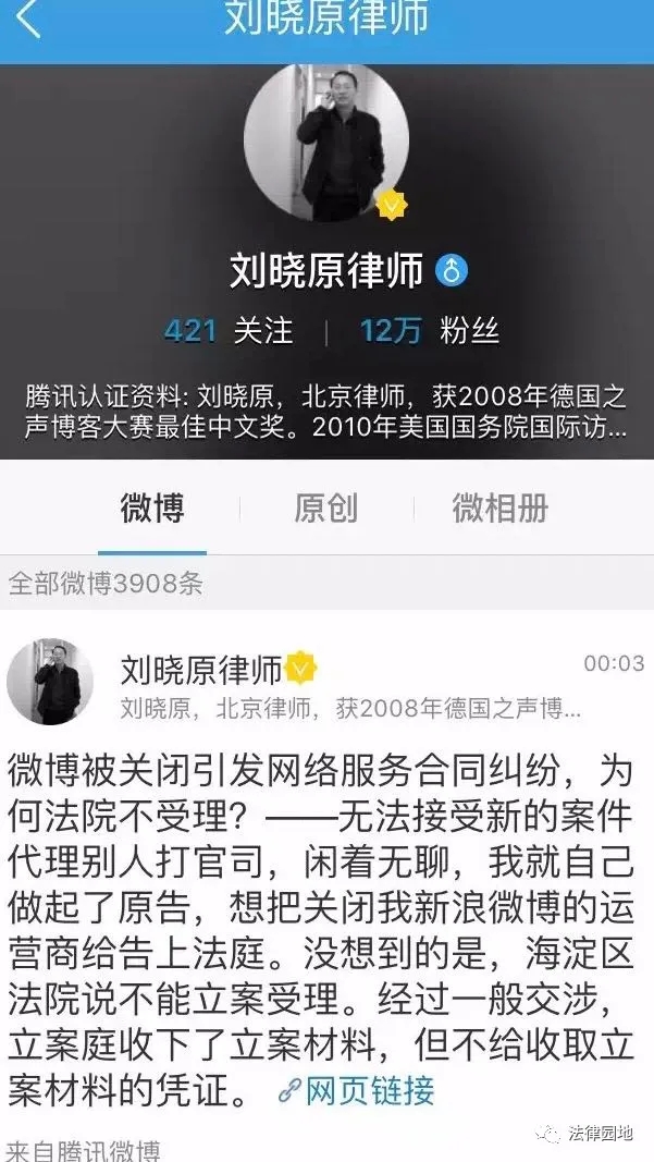 法官反问我:“死磕律师”的微博不是都被关了吗?那些粉丝几十万、几千万的微博被关闭,有人来法院起诉也没给受理。