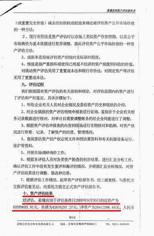 原政府招待所于2000年12月4日进行了整体资产评估,截止2000年9月30日创造的总资产为6928.96万元。负债4267.62万元,净资产为2661.33万元(见附件)。而法院民事裁定书上(见附件)截止2001年4月30资产总计2787.14万元,负债4340.59万元。从评估和法院裁定的时间间隔来年,短短七个月的时间,我们的总资产就流失4141.62万元?这显然不是事实,其中必有猫腻,用非法的评估,让“资不抵债”成为事实,难道这就是阳光政府的“阴谋”?