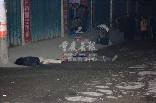 郭永华中弹的部位是左眼下方,这足以一枪致命,从枪口流出的血至少有1米多长,50厘米宽。身着藏蓝色上衣,脚穿解放鞋的郭永华直挺挺的躺在潮湿的街头。